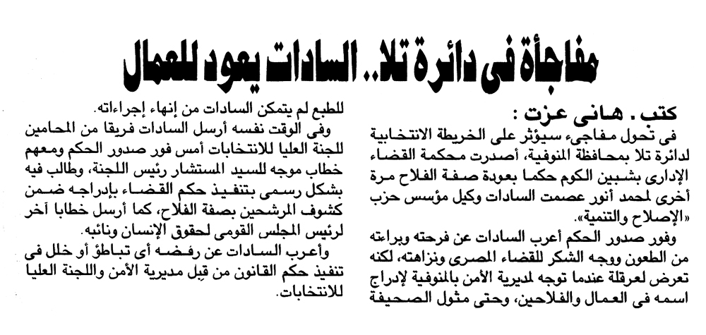 مفاجأة فى دائرة تلا ... السادات يعود للعمال